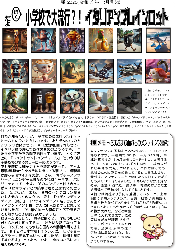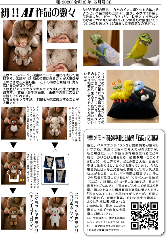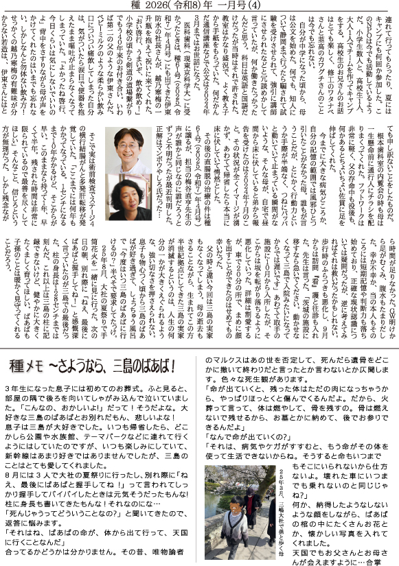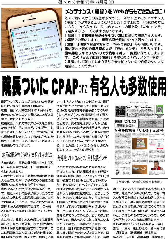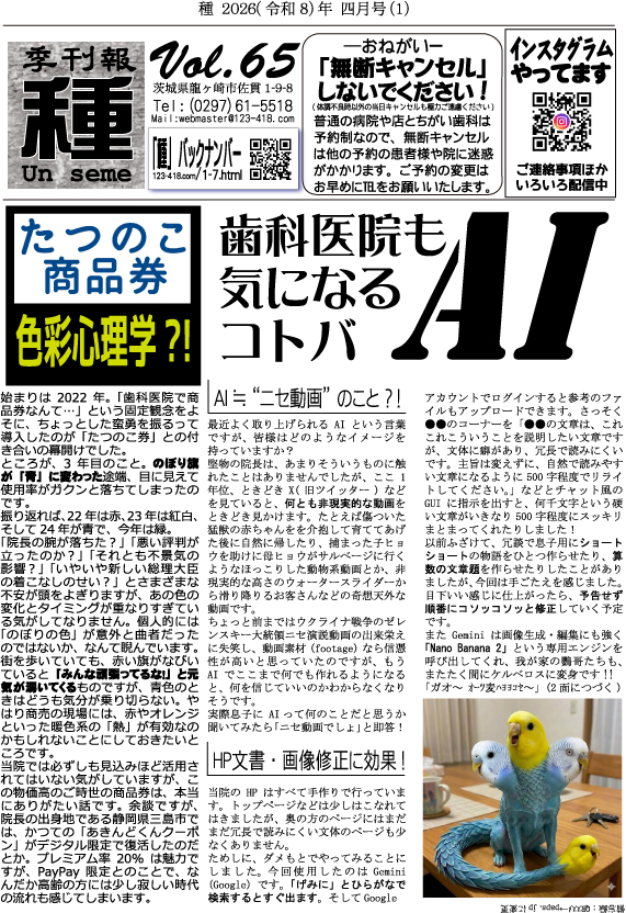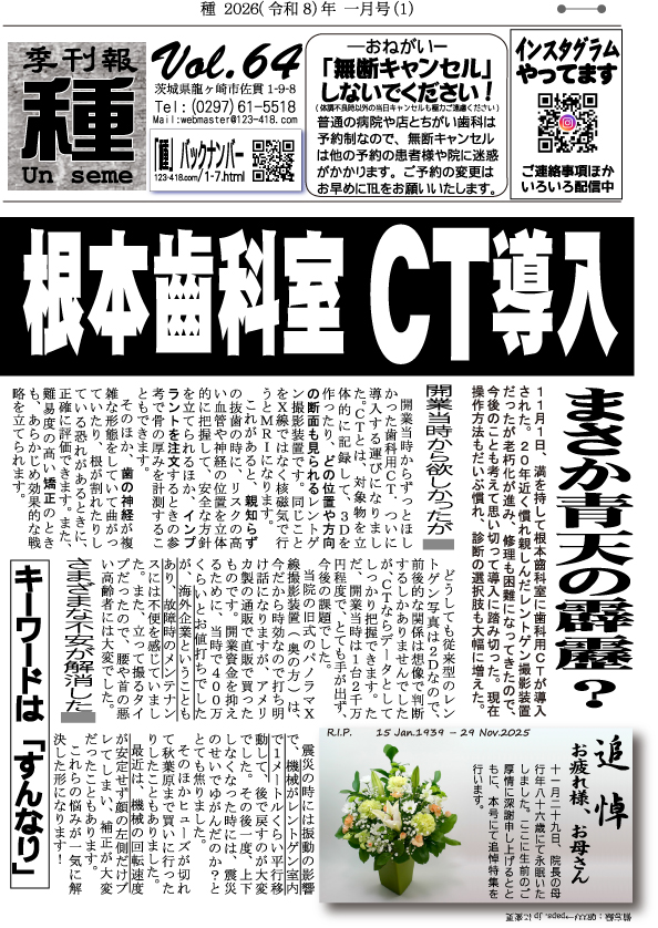 当歯科室では、2009年より、季刊報としてささやかな院内新聞「種」を刊行しております。