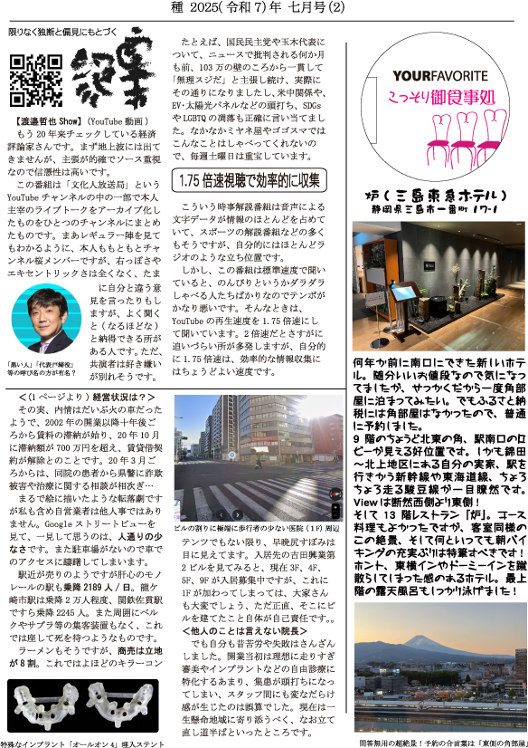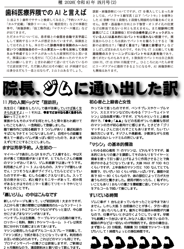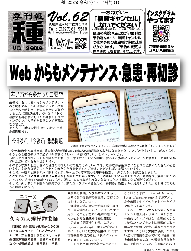 内容は雑多ですが、曲がりなりにも当歯科室なりの情報発信の一環として、待合室に置いたり、定期健診のご案内に同封したりしております。
